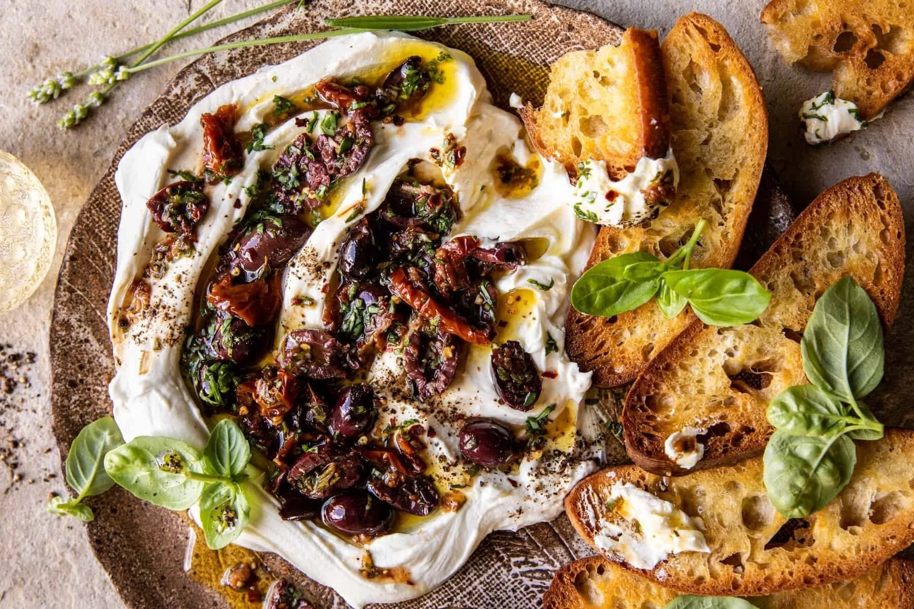 The new year means New Years' resolutions. So, why not add ‘eat more goat cheese’ to your list of goals? Make this lusciously soft Honey Whipped Goat Cheese Board topped with marinated olives. Add toasted bread, crackers or veggies, and this spread will be the highlight of the new year.