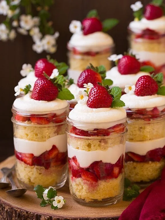 Let’s bring shortcake season back in style with these adorable strawberry shortcake trifles. The perfect personal dessert for your next summer gathering! Simply stack layers of yellow shortcake, diced strawberries and fresh cream alternating in between. Be sure to serve them in mason jars or other clear containers to show off all the colors. This dish will be your new favorite dessert that doubles as the sparkling centerpiece of your table!