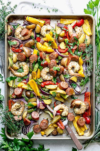 This Sheet Pan Shrimp and Sausage recipe is packed full of protein and quick to assemble. A different take on surf and turf, this dish only takes 45 minutes to prepare and packs a punch with flavorful cajun seasoning and creole sausage. The bell peppers, celery, and onions ensure you are getting your fix of veggies. Best of all, everything is roasted on a baking sheet, helping to cut down on cleaning time. Personalize this dish to suit your taste by substituting ingredients you can find here at Rittenhouse Market.