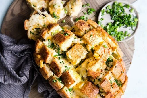 Looking to take your dinner rolls to the next level? This Pull Apart Cheese Bread is full of garlicky cheddar and mozzarella cheese that will make a must-try dish for your Thanksgiving feast. Green onion and parsley brighten up this bread, giving it added flavor and color. Perfect for sharing, this cheesy, savory, pull-apart bread is guaranteed to be a hit at your holiday table.